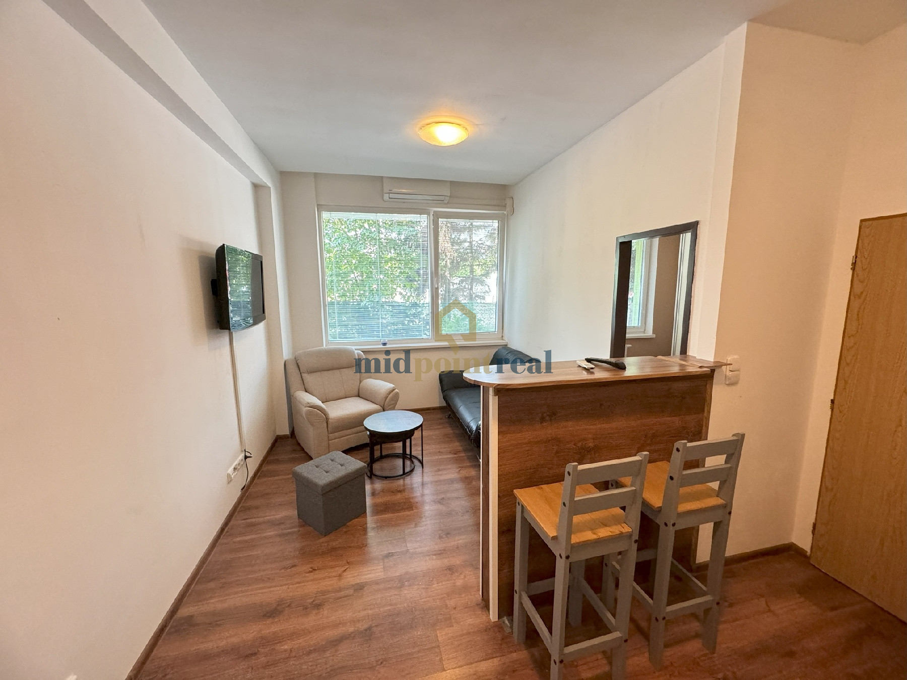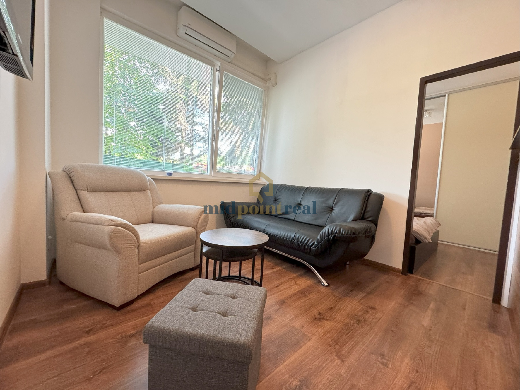 Ďalšie zariadenie bytu: Klimatizácia, posteľ, TV, šatníková skriňa rolldor, pohovka.
