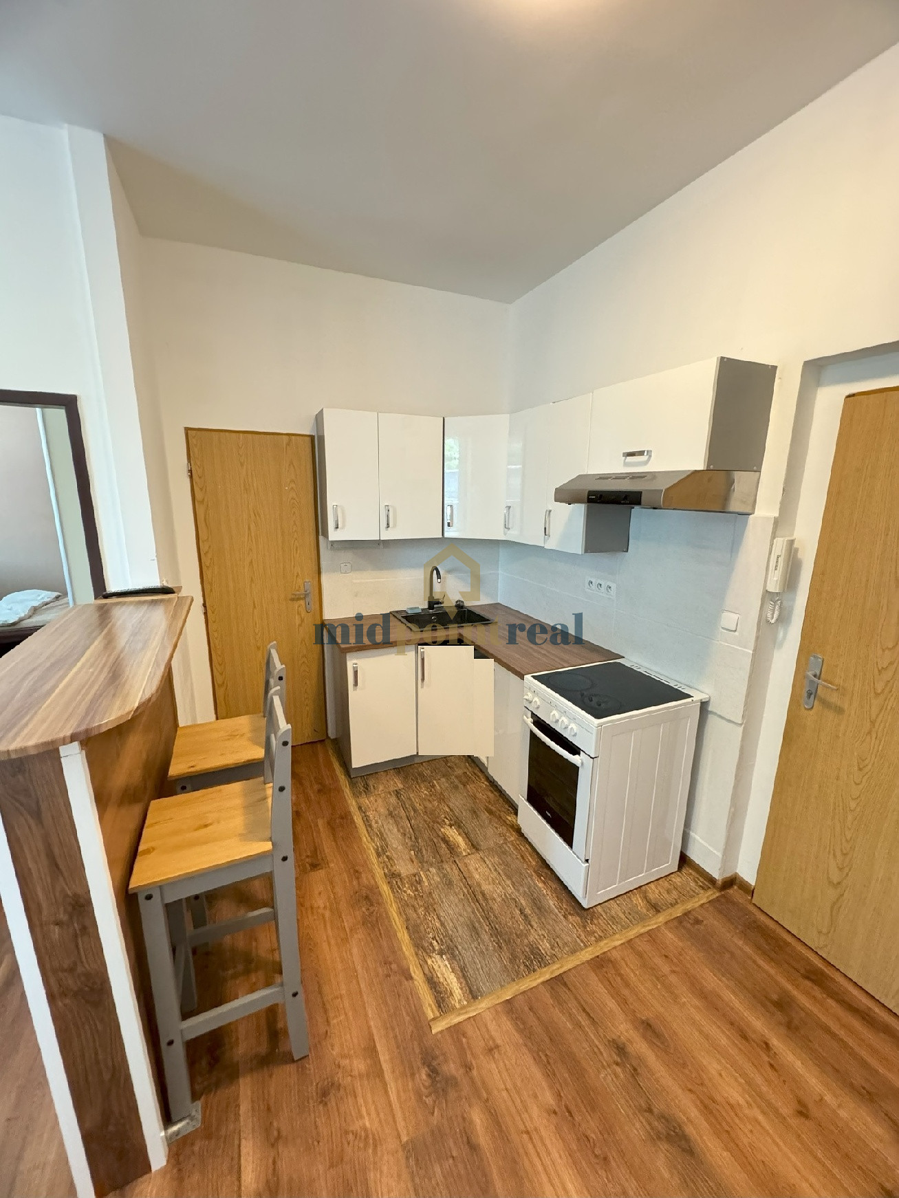 Byt je kompletne vybavený kuchynskou linkou a elektrospotrebičmi a to: