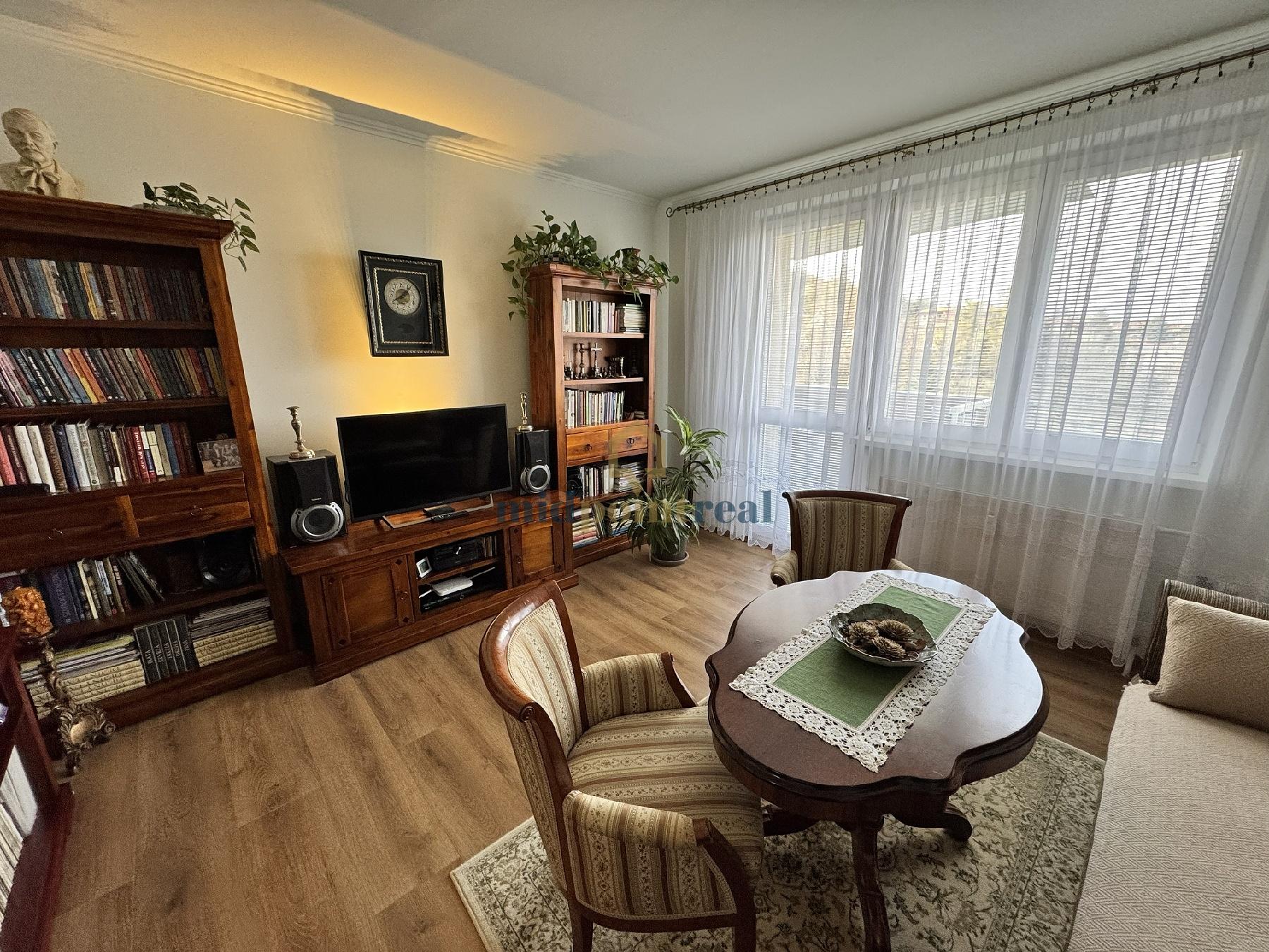 Kompletná rekoštrukcia bytu: plastové okná, murované jadro, plavajúce podlahy, interiérové dvere a obložky na mieru (drevo), kuchynská linka na mieru.